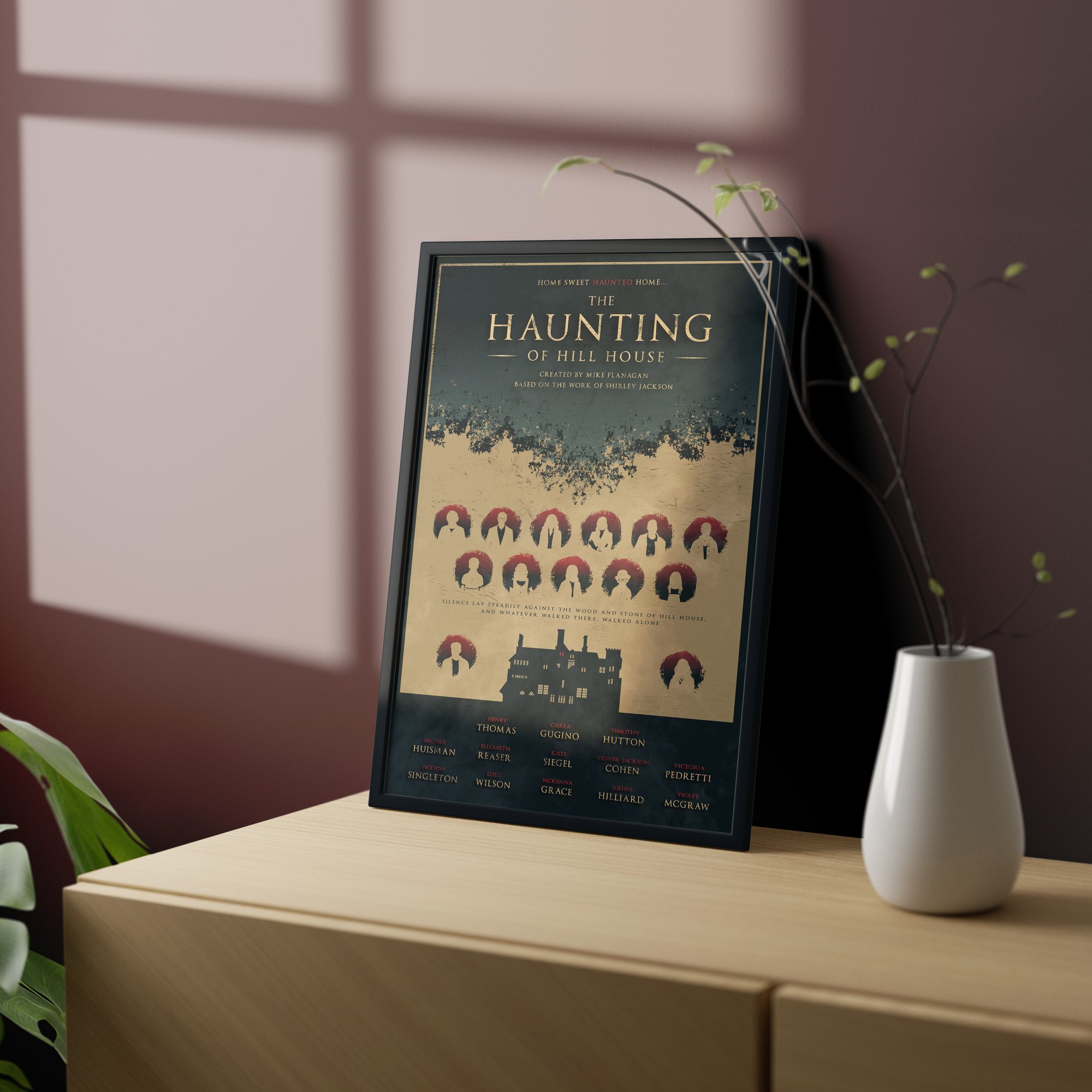11x17 minimalist poster in tribute to the series, "The Haunting of Hill House". This print includes the likenesses of Hugh, Steven, Shirley, Theo, Luke and Nell Crain.